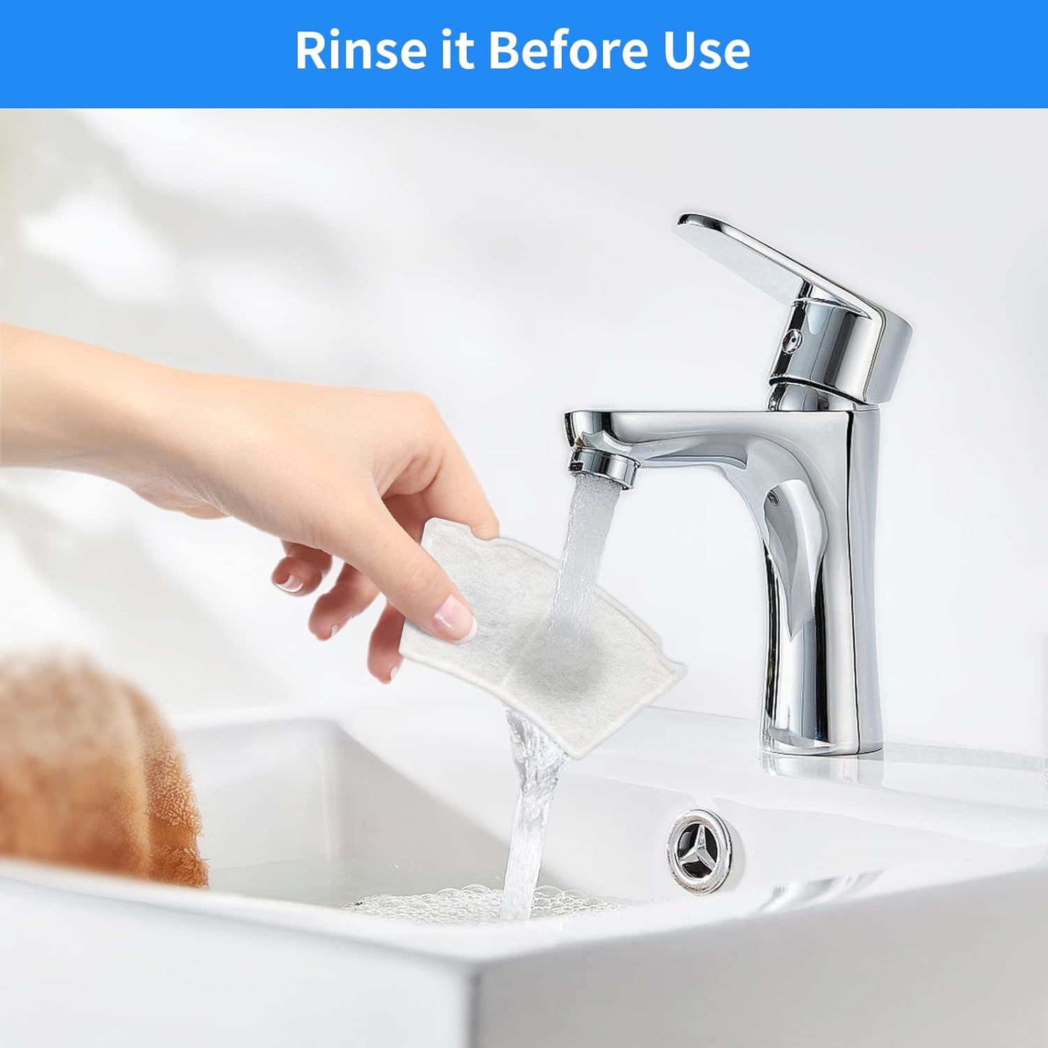 【How to Use】Before use, wash the completely new pet water fountain filter thoroughly under rinsing water to remove the excessive and scattered dust from the charcoal. To keep water clean and sanitary, please replace the charcoal filter every 7-12 days in most cases, if you have more pets, or your pets are fond of playing with the drinking water, change the cat water filter proceeding from a real situation. (As to the gift sponge filter for pump, replace it every 12-20 days)