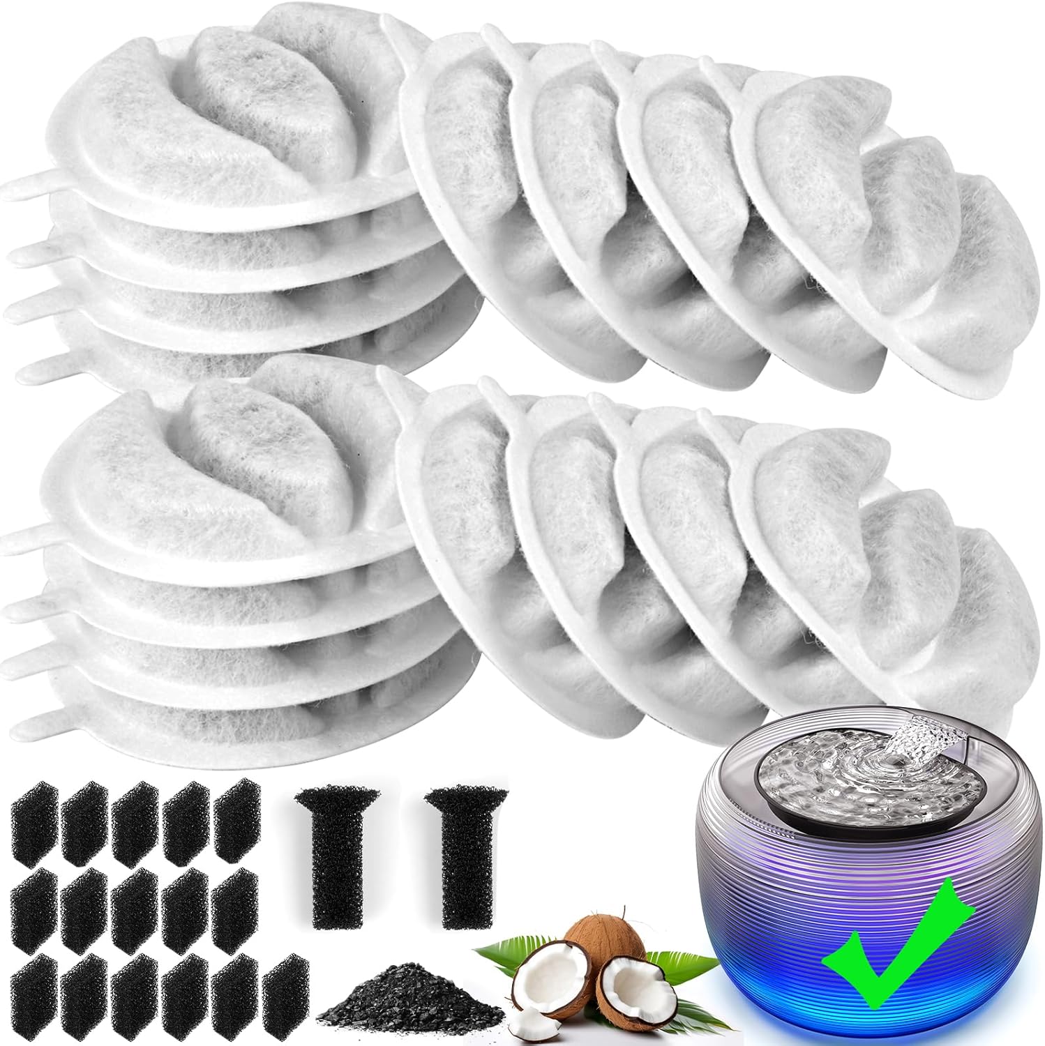 - 34 Pack Cat Fountain Filter:You will get 16 activated carbon water dispenser filters, 16 activated carbon sponge filters for water pumps and 2 sound absorbing cotton. Each piece is individually sealed to ensure that its filtering quality will not deteriorate even after long-term storage.